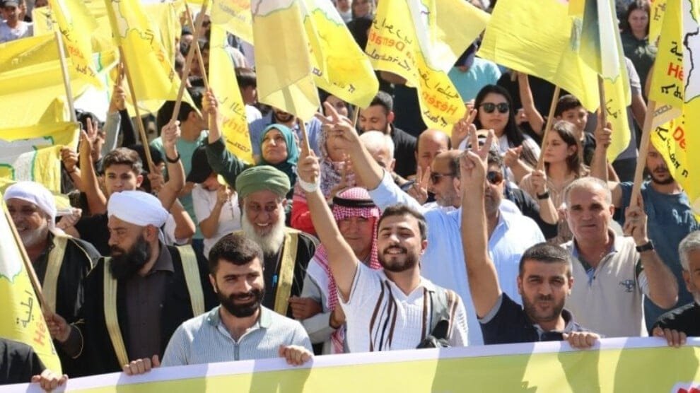 Tebqa Kantonu sakinleri ile Efrin ve Şehba’dan göç eden halk, Suriye Demokratik Güçleri’ne (QSD) destek amacıyla yürüyüş düzenledi. Yüzlerce yurttaşın