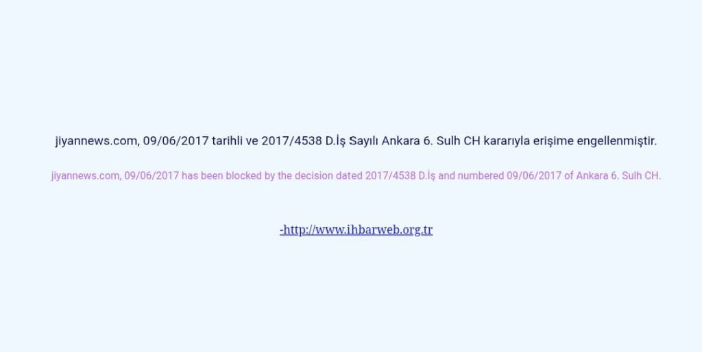 Erişim engeli kararının gerekçesi olarak “milli güvenlik ve kamu düzeninin korunması” gösterildi. BTK tarafından alınan karar doğrultusunda ilgili internet adresleri ve sosyal medya hesaplarına Türkiye sınırları içerisinden erişim kısıtlandı. Yeni adresimiz jiyannews.blog