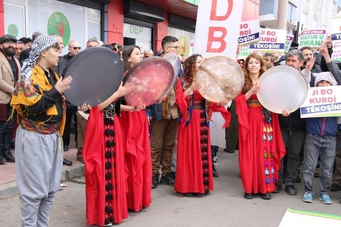 Dil kurumları ve DBP öncülüğünde Amed’de yapılan yürüyüşte asimilasyon politikalarına dikkat çekilerek, Kürtçenin resmi dil olması ve eğitim verilmesi talebi